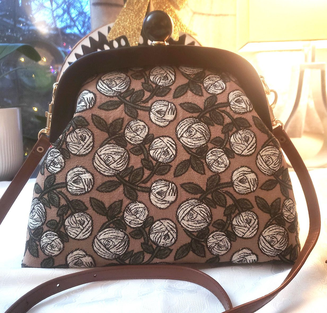 Rose Embroidery + Wooden Handle Bag - Brown Version